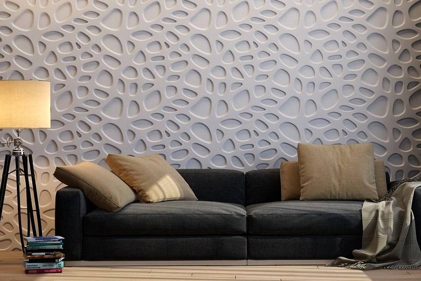Что касается 3d панелей, то здесь важен не только рисунок, рельефность, но и уровневость. Оптимальным вариантом являются стеновые панели из гипса. Но бывают панели с 3д эффектом и из других материалов, например, МДФ. Очень красиво смотрятся 3д стеновые панели под дерево в интерьере любой комнаты.
