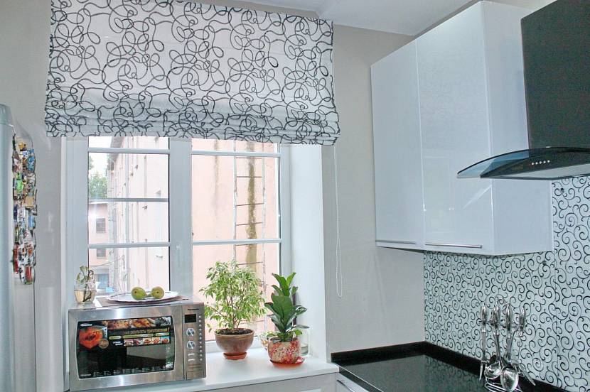 Хорошо подходят короткие шторы светлых оттенков (как с точки зрения удобства, так и дизайна). Если есть желание выбрать длинные шторы для маленькой кухни, лучше отдать предпочтение легким и тонким тканям. На таких изделиях не должно быть ярких принтов и вызывающих элементов.