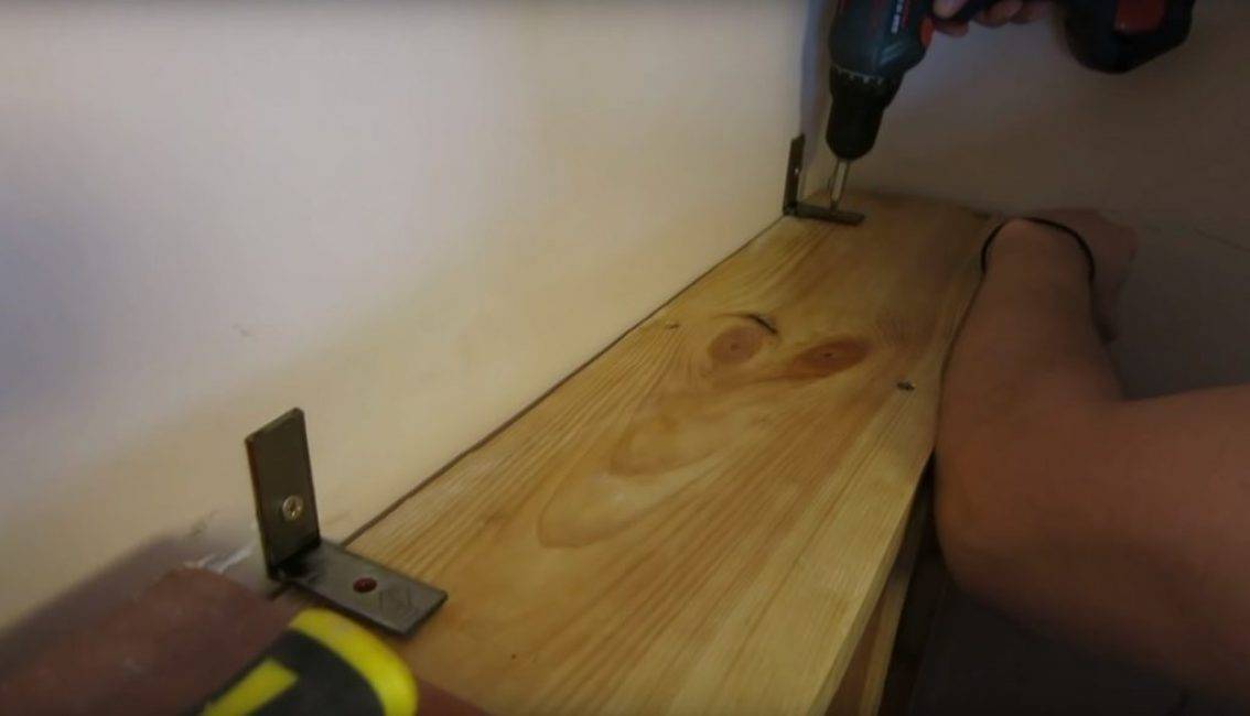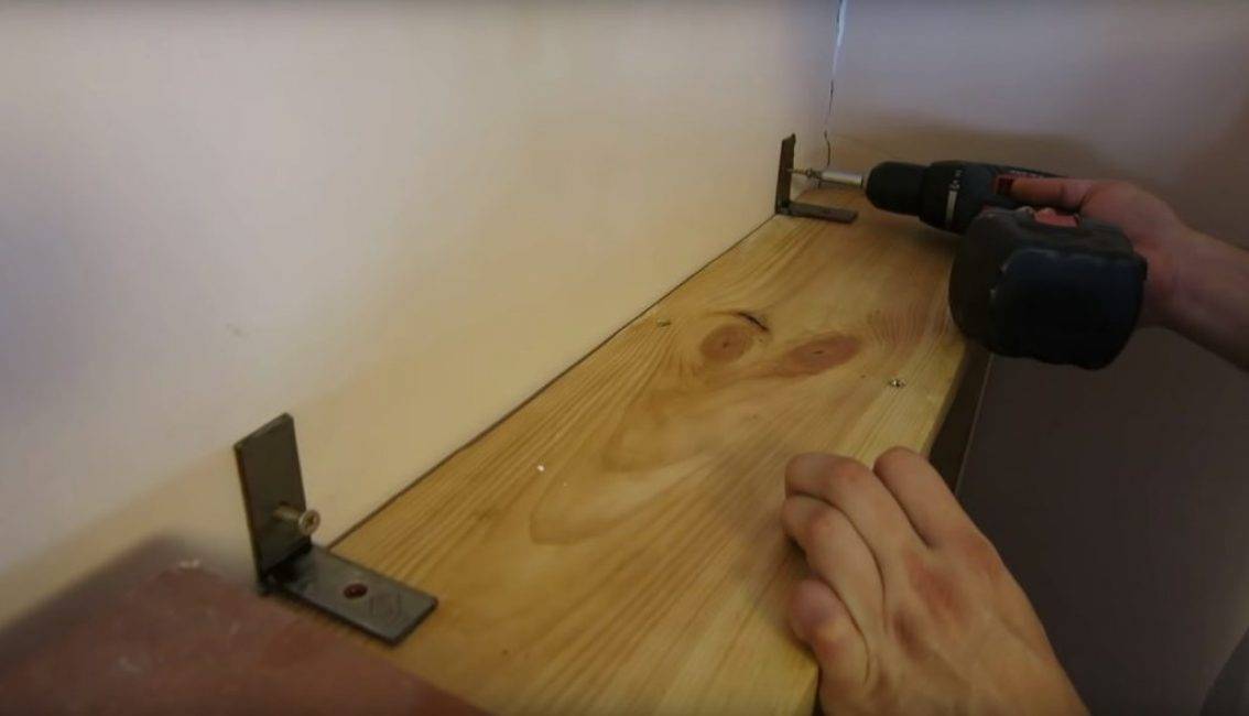 Крепление полки к уголкам при помощи саморезов шуруповерта