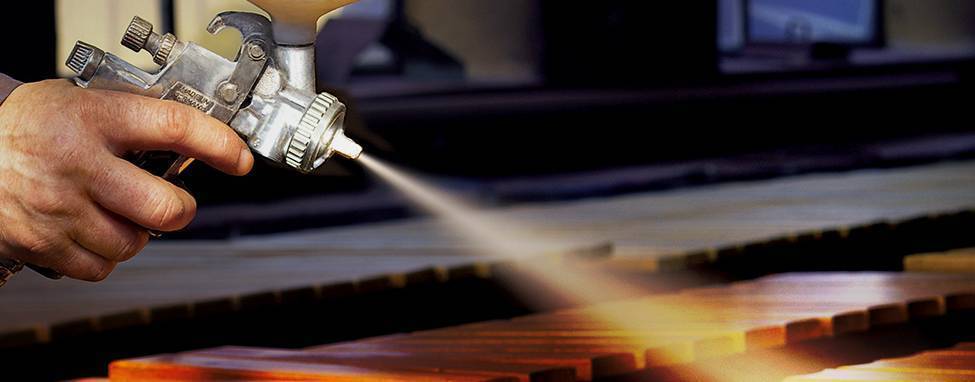 Метод, который часто используют профессионалы. Когда речь заходит о лакировании больших рабочих поверхностей данная разновидность становится незаменимой. Более того, такой способ обеспечит максимально равномерное распределение частиц по поверхности. Работая с распылителем необходимо помнить о мерах защит органов дыхания и стараться производить лакировку в помещении с достаточным доступом свежего воздуха.