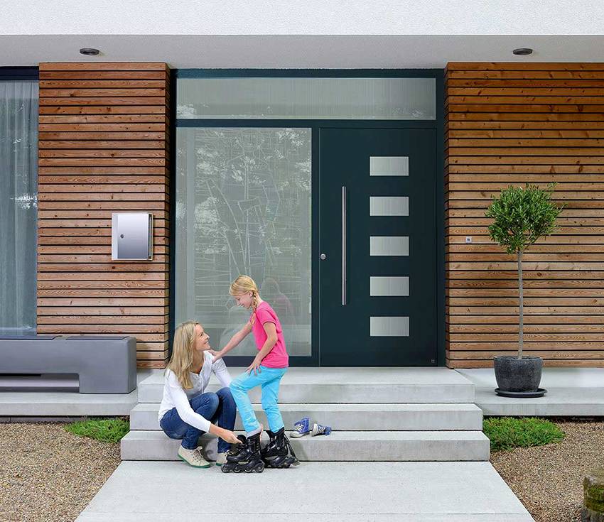 Совершенно глухая алюминиевая дверь обеспечивает наивысшую приватность, интимность обстановки в доме
