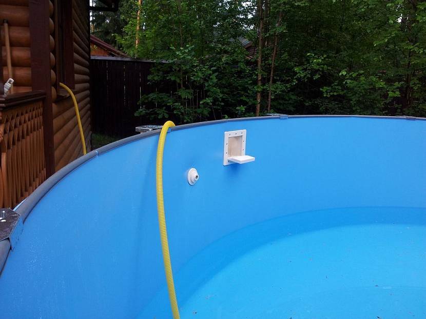 | Более сложная установка, с применением опорных металлических трубок. Требуется подготовка поверхности земли. Стальные стойки частично компенсируют наклон участка. | Прост в установке (закачал воздух, залил водой и можно купаться). Поверхность участка должна быть ровной, так как вода давит со всех сторон, из-за чего может переливаться. |