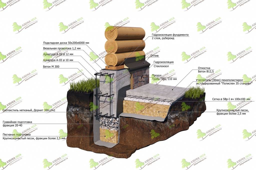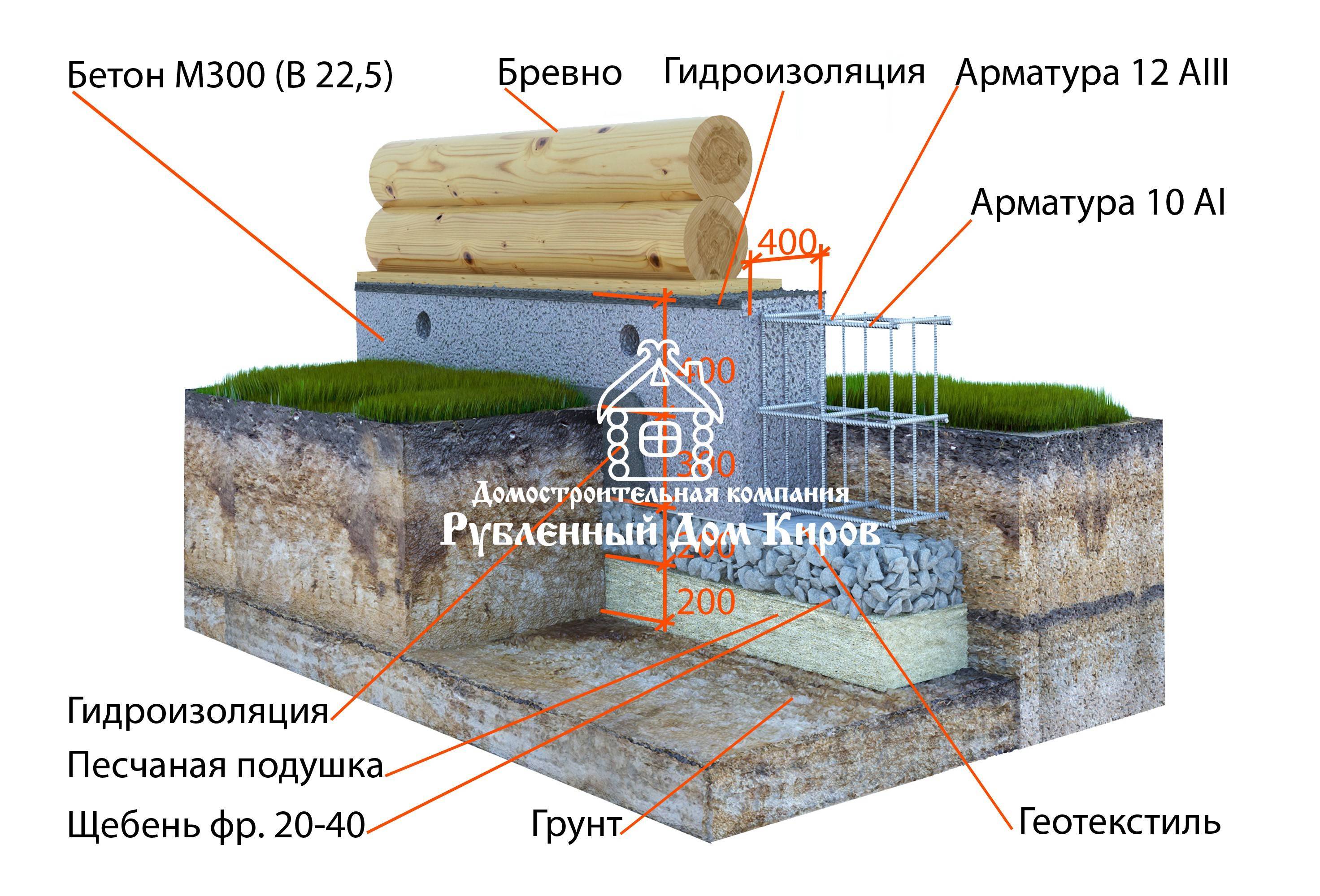 На сегодняшний день одним из популярнейших вариантов фундамента под здания из бревна считается ленточный тип
