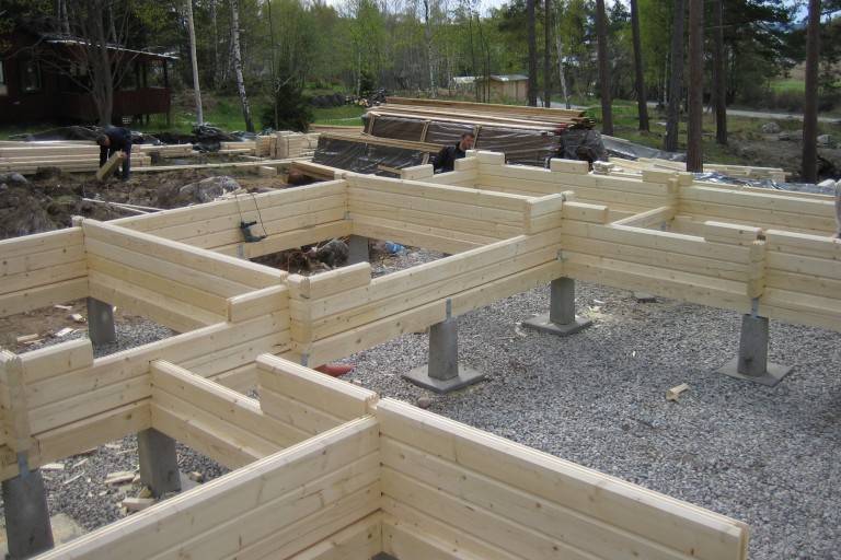 Возведение фундамента под жилье из клееного бруса дает преимущества: