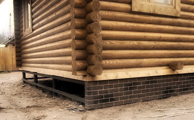 - Древесина. Недолговечный и непрочный материал для возведения столбчатого фундамента. Элементы основания – брус или бревно большого сечения. Его не используют под жилые дома – максимум для строительства бани. Кроме гидроизоляции, потребуется защитить бревно от огня, гнили и паразитов, поэтому доступность в цене оказывается мифической. Достоинство основания – возможность не затягивать со строительством объекта ни дня.