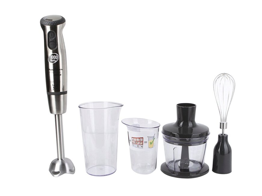 - Погружной блендер с отдельной чашей для измельчения и мерным стаканом.