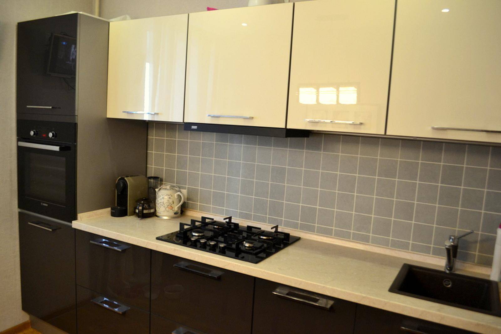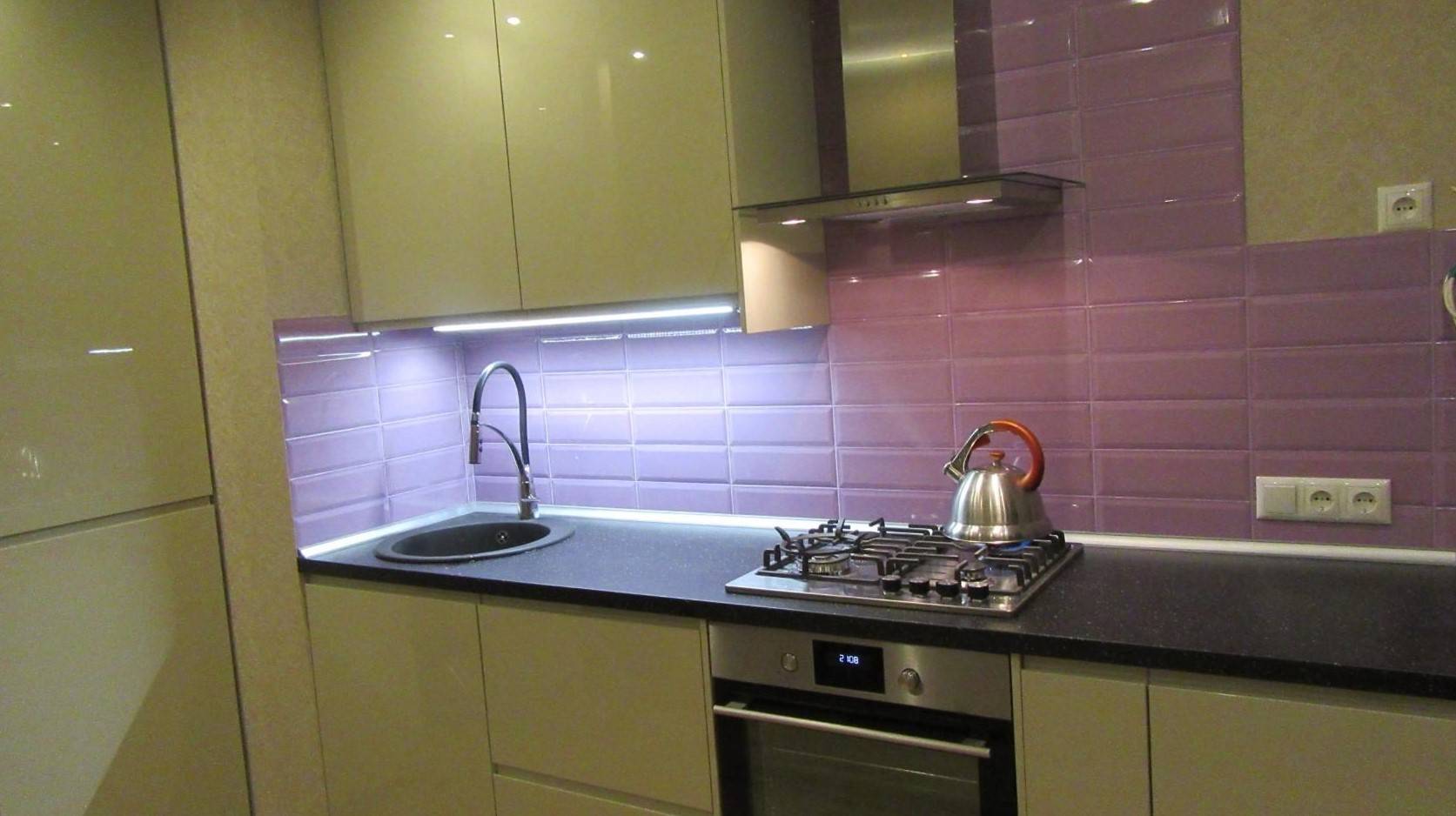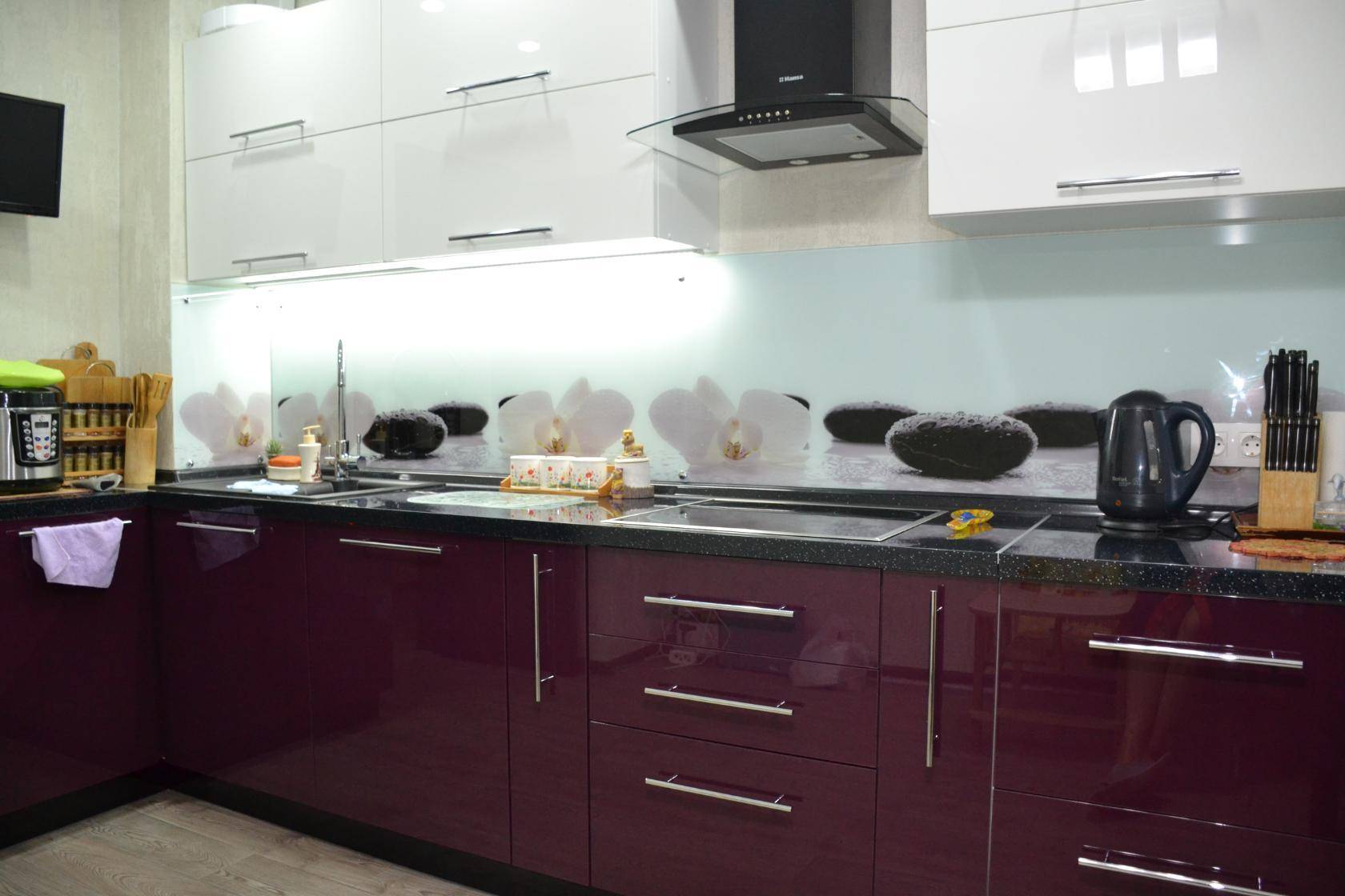 Стеклянный фартук — для кухонь, имеющих хорошую вентиляциюПлюсы: