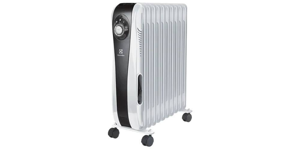 Мощность — 2900 Вт, обогреваемая площадь 29 кв. м. Например, мощность модели Electrolux EOH/M-5221N ниже. Температуру нагрева 11 секций прибора можно регулировать самостоятельно. Управление – механическое. Функции — встроенный вентилятор, термостат, защита от перегрева. Модель имеет колесики и ручку для перемещения, выключатель оснащён световым индикатором. Цена — 3300 руб.