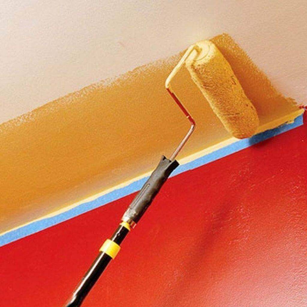 Техника покраски простая: валиком в два слоя. Причем слои взаимно перпендикулярны. Края у стен (где не достать валиком) прокрашивают плоской кистью-флейцем.