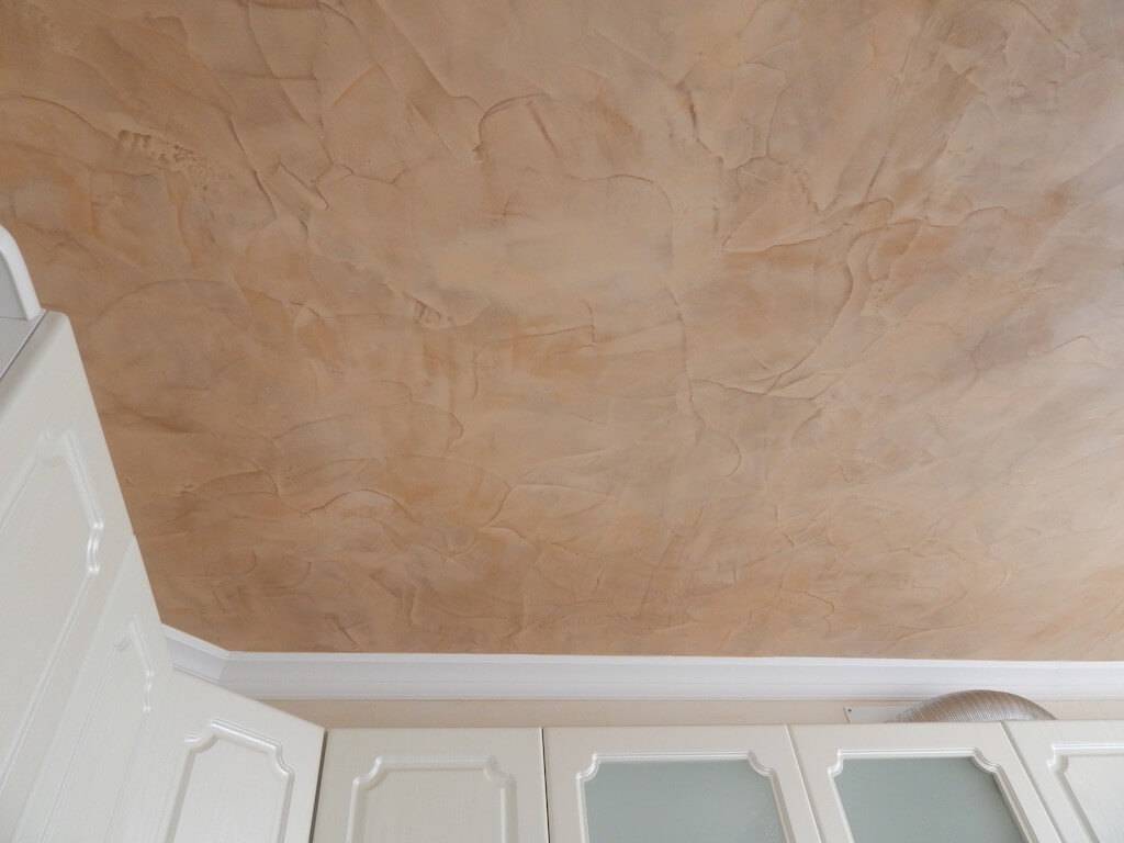 Выполнить оштукатуривание кухонного потолка проще простого. Этот вариант декоративной отделки самый дешевый, в работе используется строительная смесь, которую железным шпателем наносят на поверхность. Однако данный способ в последние годы утратил свою актуальность, его редко выбирают для оформления интерьерных решений, так как сделать это своими руками довольно сложно, для этого требуются навыки и определенные знания.