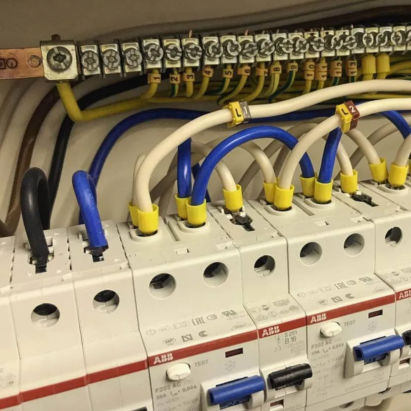 - На автоматических щитках и УЗО лучше применять 1-жильный проводник, так как хорошо удерживается на своем месте и не повреждается при замене автомата.