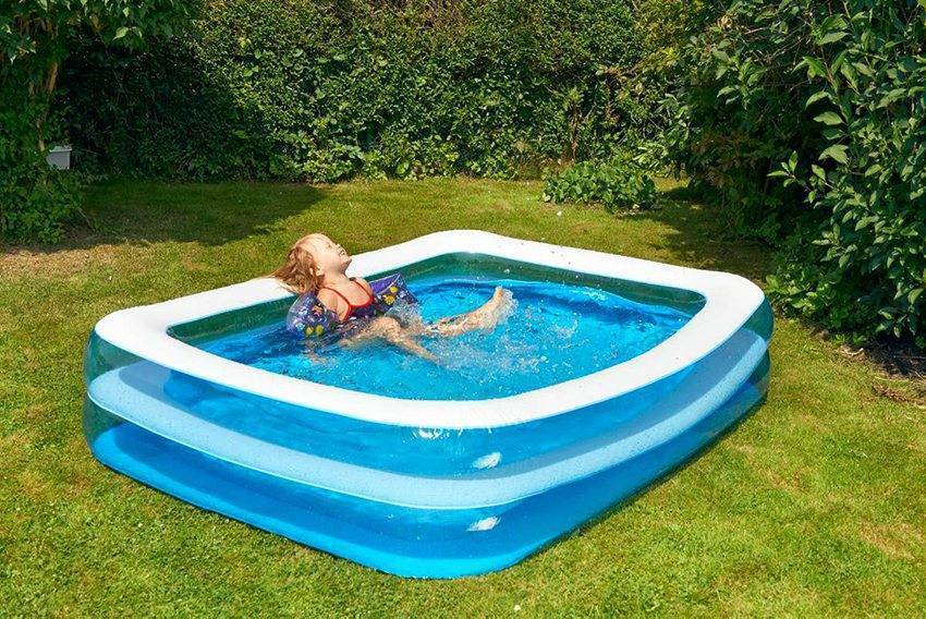 - легкий и быстрый монтаж — перед тем как установить надувной бассейн на даче, выбирается любое подходящее место, закачивается воздух и конструкция наполняется водой;