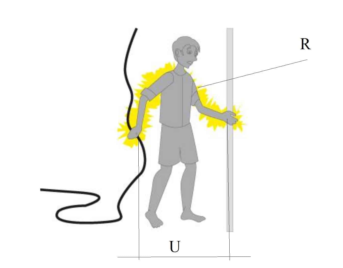 - U – величина напряжения, приложенного к человеку;