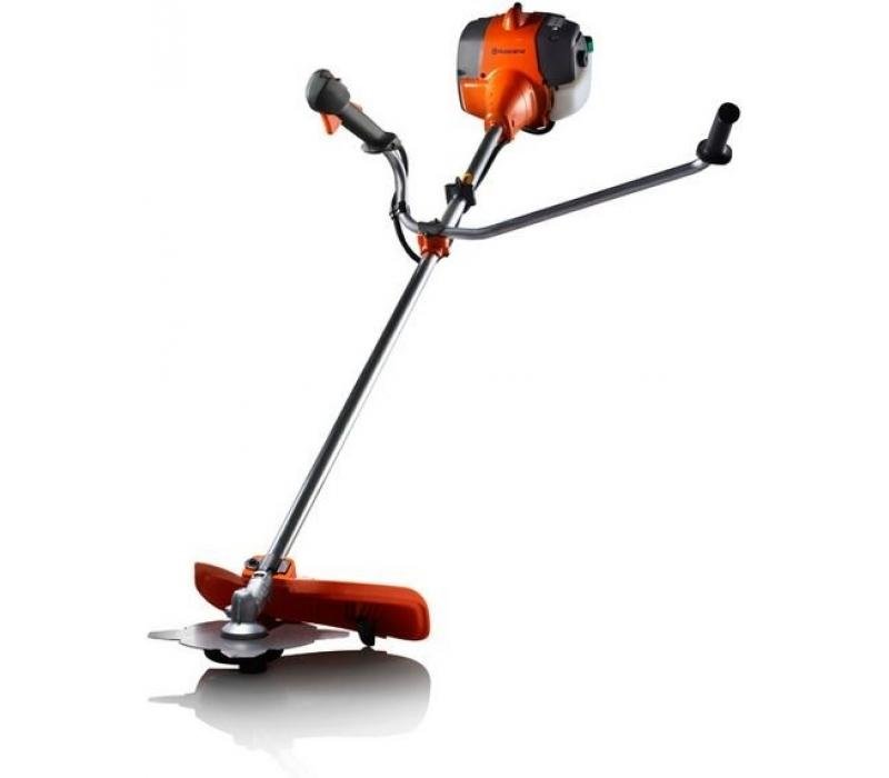 Легкая бензиновая модель шведского бренда производится в США. Старт двигателя осуществляется легким движением руки. Это заслуга системы Smart Start, топливоподкачивающего насоса, автовозврата выключателя зажигания. Прибор оснащен прочным гибким валом. В комплектацию входят ножи для травы, ремни на оба плеча, полуавтоматическая триммерная головка. Эргономичная прорезиненная рукоятка регулируется по высоте. Прибор обладает высокой мощностью – 800 л.с. Триммер весит всего 5 кг, это выделяет его на фоне аналогичных устройств других брендов. Прибор заправляется маслом и бензином (только фирменная продукция) в соотношении 1 к 50.