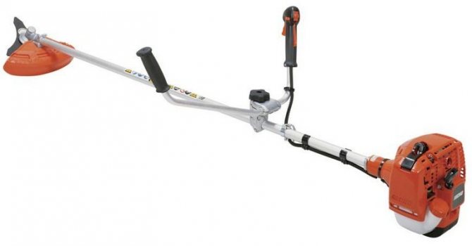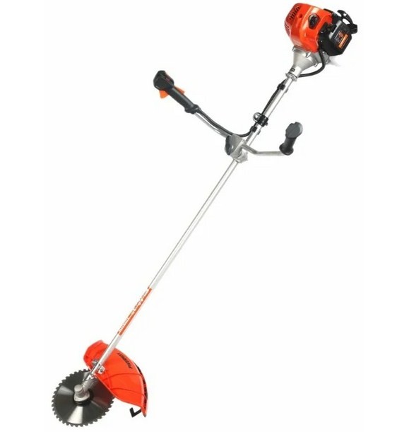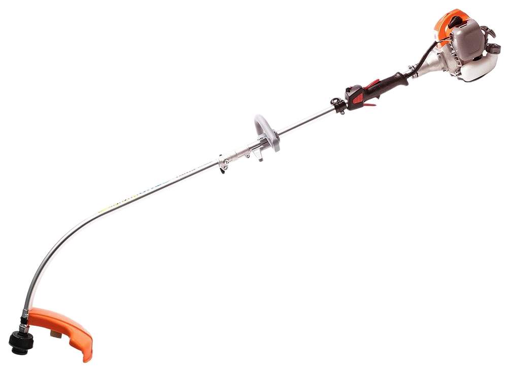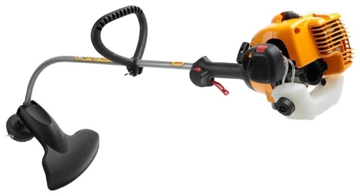 Это триммер полупрофессионального класса, оснащенный двухтактным двигателем. Эксплуатация комфортная, так как благодаря системе легкого запуска нет обратного удара. Устройство подходит для применения на газонах и участках с густой растительностью. Есть два варианта режущего элемента – леска или нож. Прибор экономно расходует топливо, поэтому не нуждается в частой заправке, даже несмотря на емкость бака 0,84 л. Небольшой вес – одно из главных преимуществ. Прибор оснащен регулируемой рукояткой, его можно настроить под индивидуальные особенности владельца.