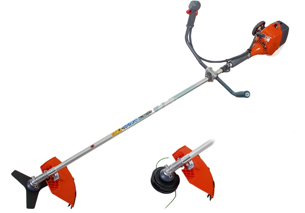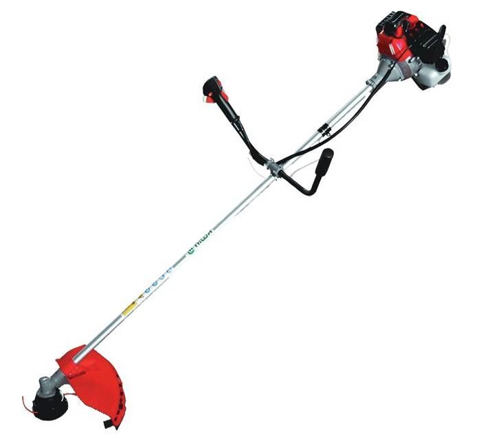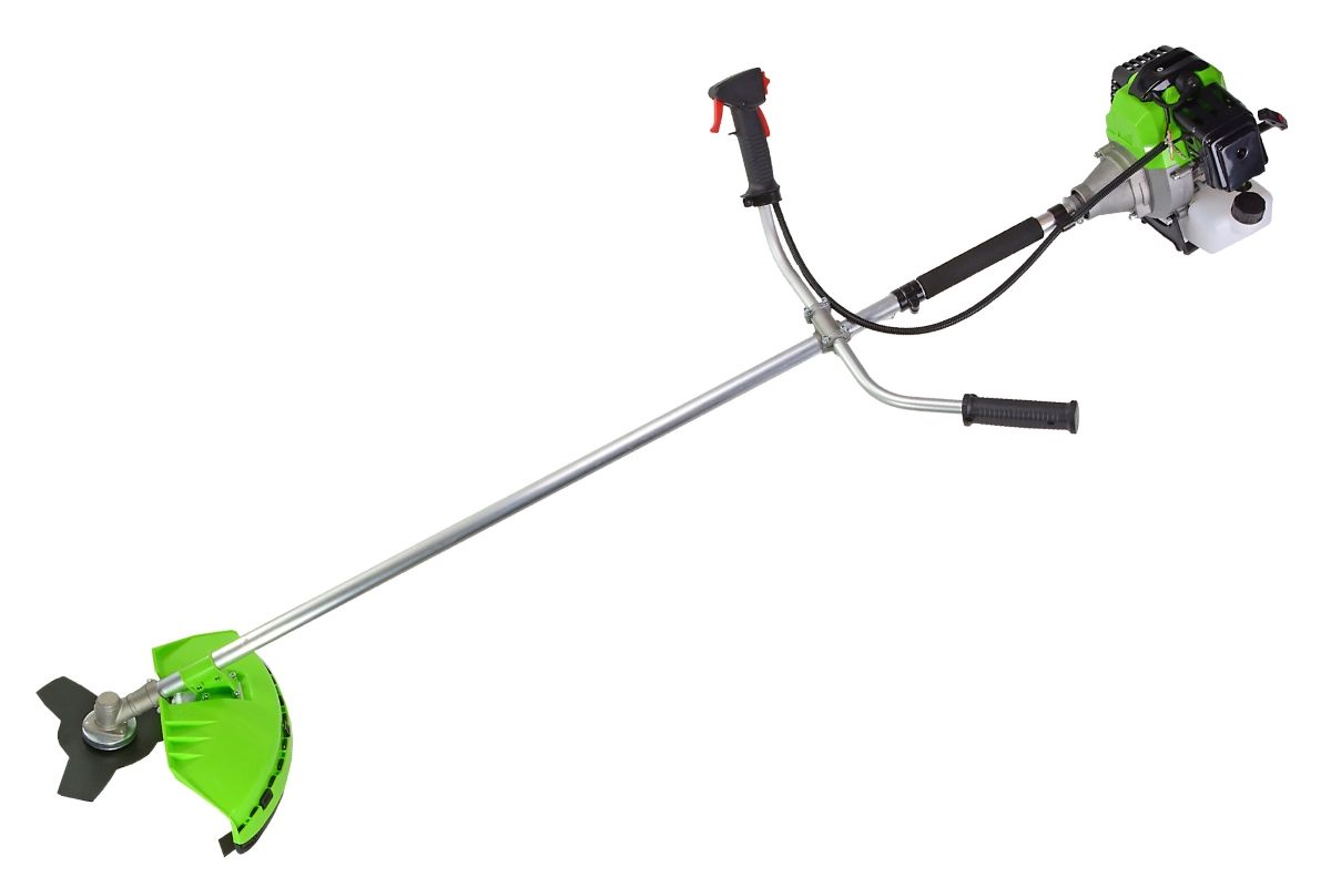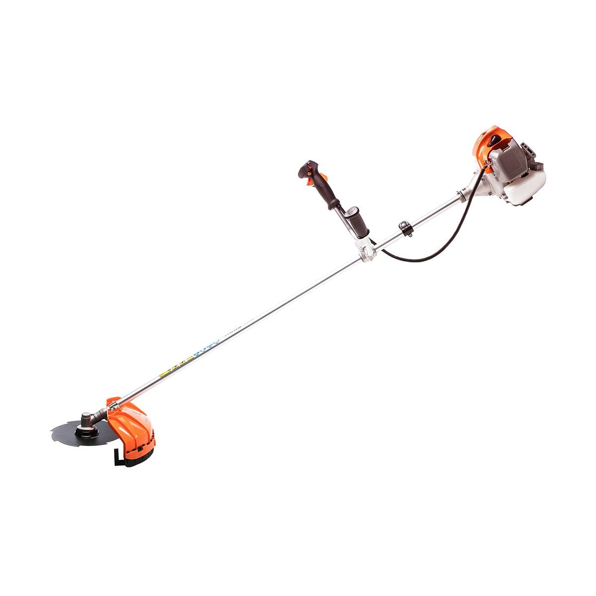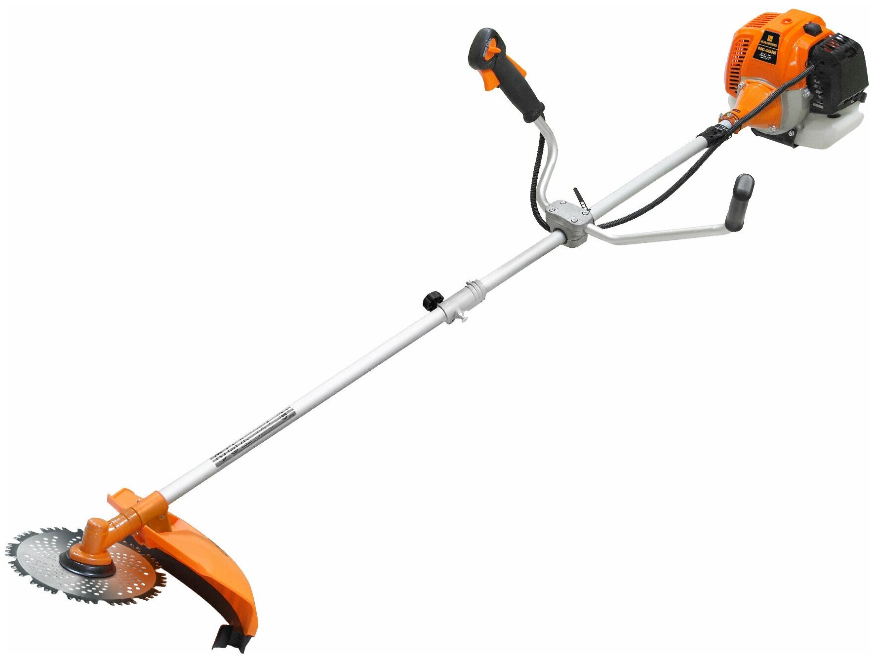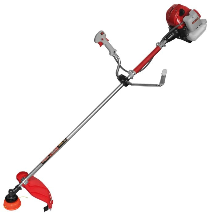 Мощный инструмент китайского производства. Идеально подходит для скашивания густых насаждений, может охватить большую площадь участка. Прибор предлагает в качестве режущего элемента леску (для мягкой травы) и нож (для жестких сорняков, кустарников, небольших деревьев). Замена производится легко и быстро. Триммер оснащен системой антивибрации. Элементы управления находятся на рукоятке. Техническое обслуживание не доставит проблем – свечи зажигания и воздушный фильтр находятся в легком доступе. Можно не обращаться в сервисный центр. Для работы с триммером производитель рекомендует использовать запатентованные смазки и масла, чтобы снизить вредные выбросы в окружающую среду. Удобство эксплуатации обеспечивает ремень на два плеча, «велосипедная» рукоятка. Решение, цена которого соответствует качеству.
