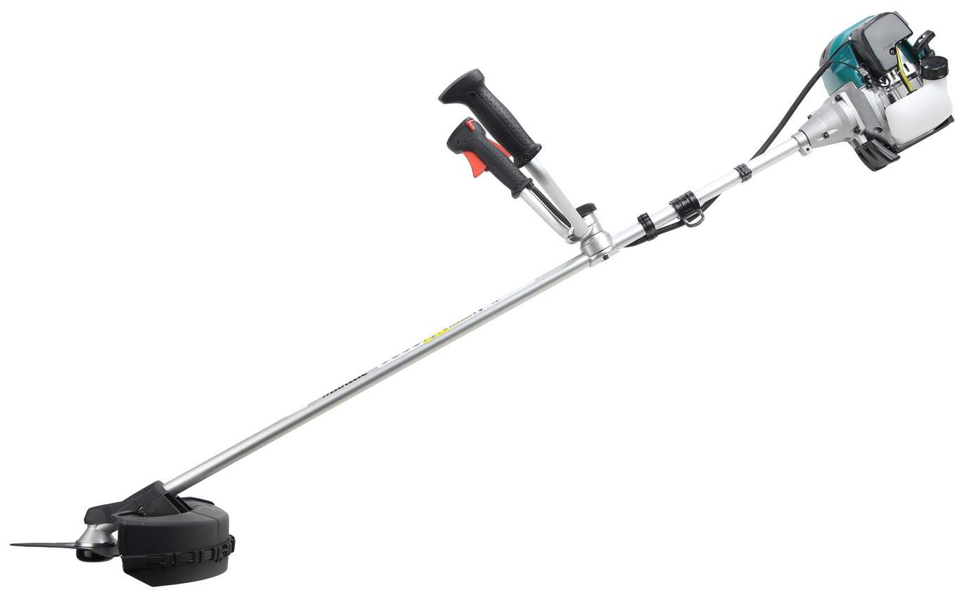 Работает с двумя оснастками: пользователь может установить леску или трехлопастный нож, в зависимости от специфики растительности на участке. Усовершенствованная катушка позволяет быстро заменить леску. При продолжительном применении можно пользоваться наплечным ремнем, который идет в комплекте. Велосипедная рукоятка легко настраивается оператором, обеспечивает точное управление.