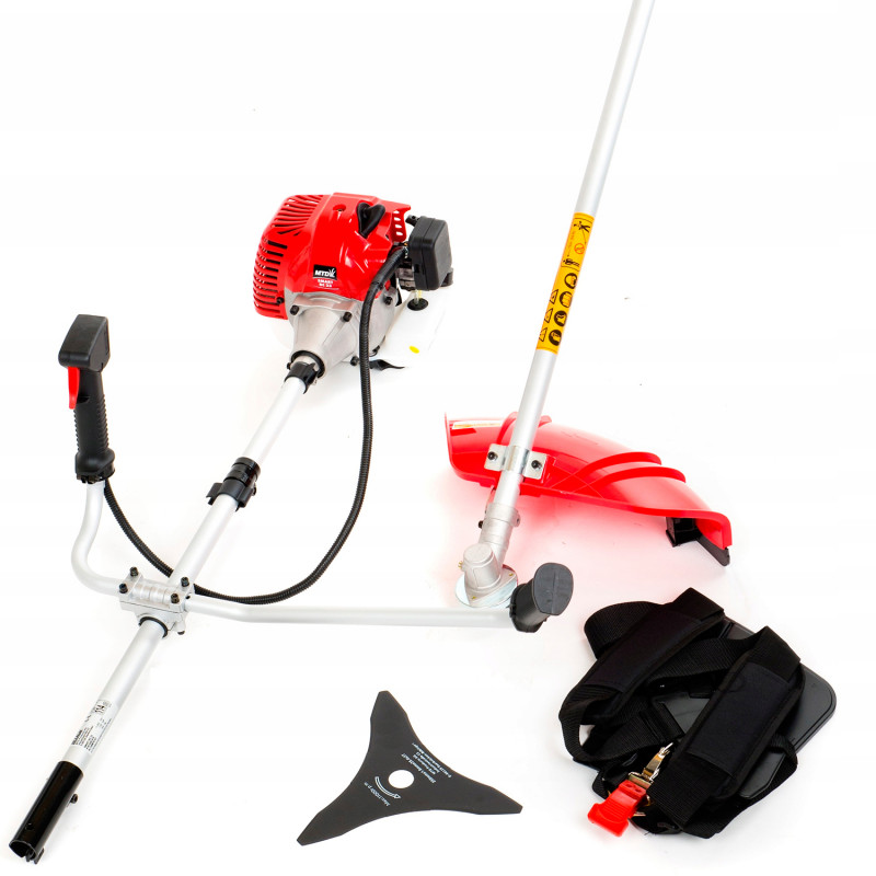 Порадует в этой модели покупателя и богатая комплектация. Вместе с триммером он получит: ремень на оба плеча (ранцевый), катушку корда, дисковый нож с напайками, с зубцами (40 шт), набор крепежа и инструмента для монтажа и последующей эксплуатации, канистру для бензина, удобную воронку для заправки, а также кожухи и документацию.