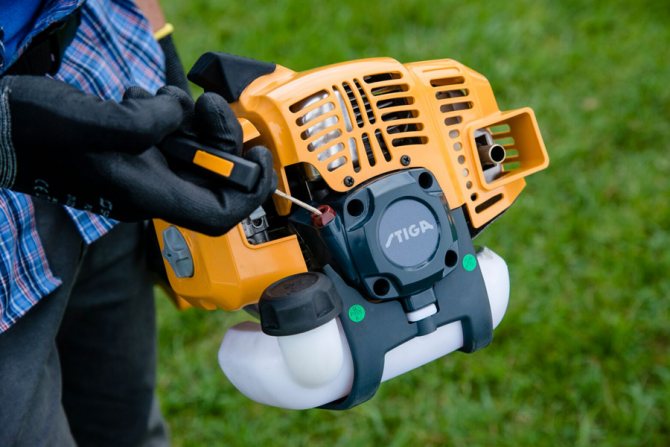 Двигатель является главным элементом любого триммера. Ведь именно от него зависит производительность и потенциал инструмента. Чем мощнее мотор, тем больше нагрузок он сможет выдержать и тем эффективнее будет его работа. Но при этом увеличиваются габариты и вес агрегата.