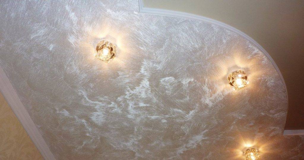Декоративная штукатурка имеет много цветов и фактур, просто очищается, не требует выравнивания основания, эксплуатируется до 10 лет, не горит, влагоустойчивая и сохраняет высоту потолков. Но её невозможно замаскировать коммуникации, нужны опытные мастера для сложных типов покрытия и большая стоимость.