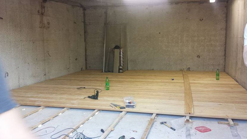 Укладка деревянного пола в гаражеИсточник derevyannyy.com