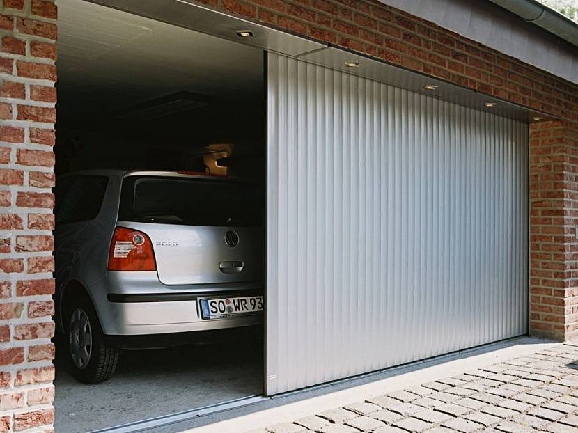 Представляют собой одностворчатые конструкции, которые поднимаются вверх под потолок гаража. Хороший вариант для небольших гаражных помещений. Но линию подъема таких ворот нужно учитывать, продумывая обустройство гаража внутри, чтобы они не задевали светильники или отделку потолка.