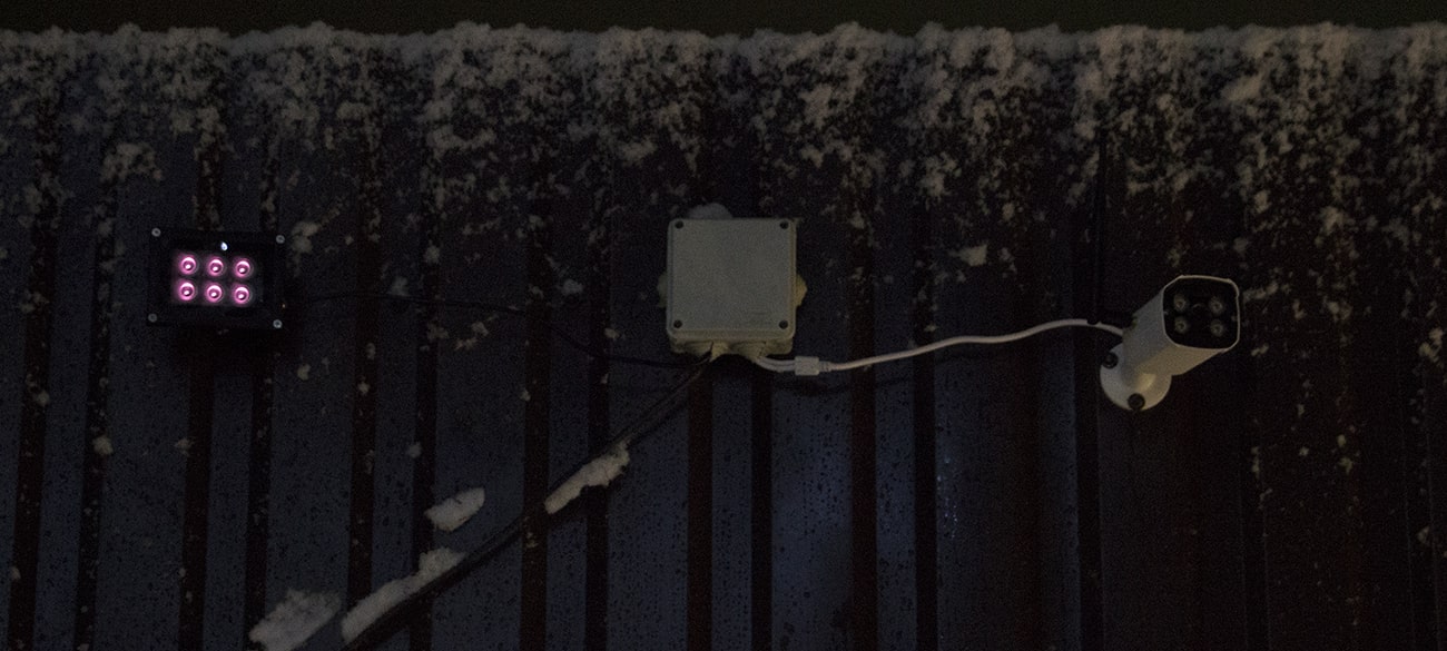 Инфракрасный прожектор — дополнительный источник освещения для камер видеонаблюдения в режиме ночной съёмки. Также внешний ИК-прожектор помогает избежать ложных срабатываний датчика движений на снег, дождь, паутину и насекомых.