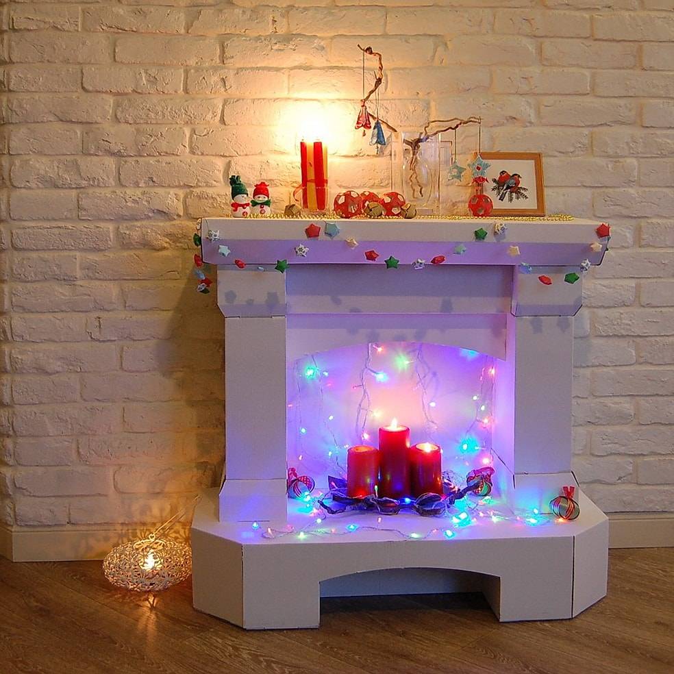 Декоративный камин из картонной коробки из-под телевизора своими руками: размеры