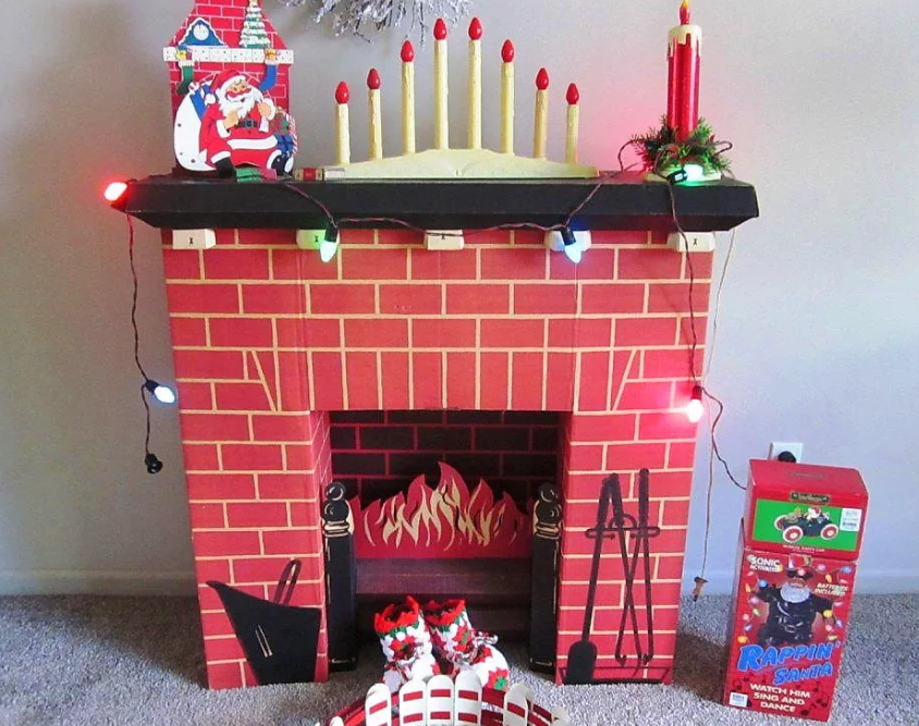 Теперь самое время заняться топкой, особенно если вы хотите, чтобы новогодний камин выглядел настоящим.