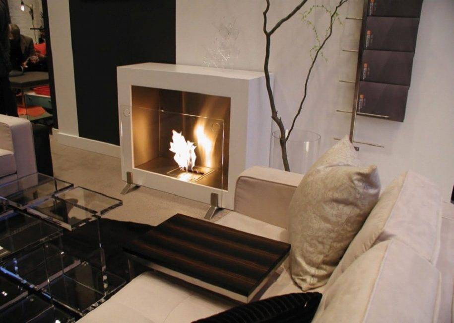 В продаже есть безопасные биокамины, которые можно встроить в домашние имитации. Это усовершенствованная спиртовая горелка практически без запаха, дыма и риска возгорания. В закрытых помещениях без дымоходов это единственный вариант живого открытого огня.