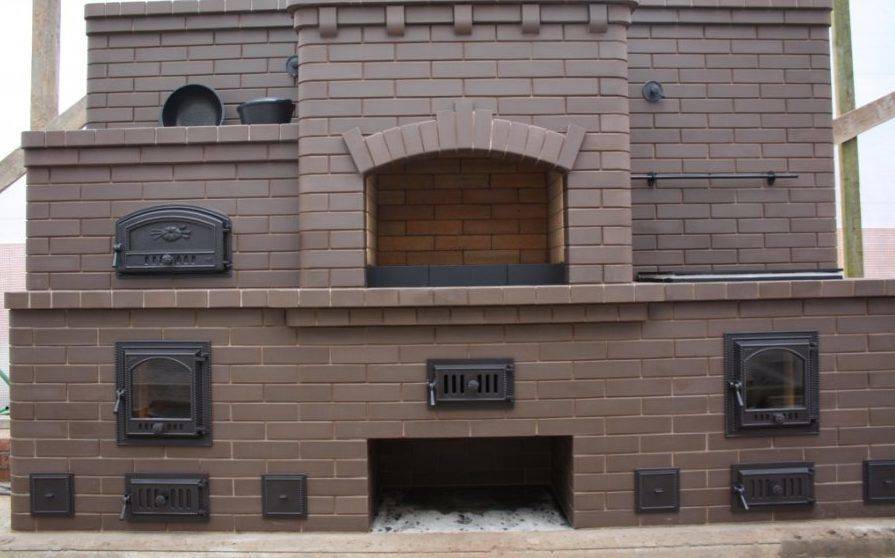 Традиционная конструкция выполняется из кирпича с последующим монтажом стального или чугунного агрегата. Вес этого сооружения требует возведения фундамента на глубину до 80 сантиметров.