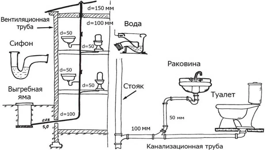 сточной системы в санузле применяются детали, диаметр которых начинается со 100