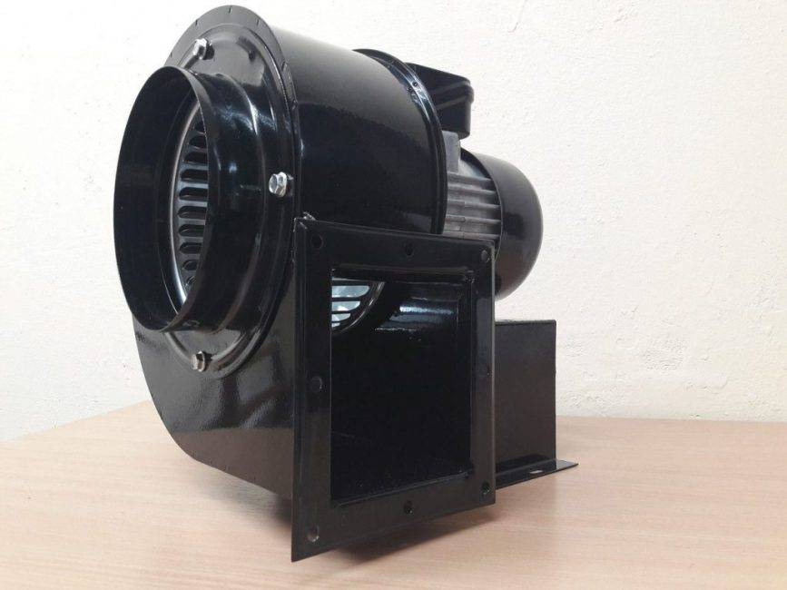 Двигатель стоит на раме, а кожух воздуховода получил название «улитка» за свой внешний вид. Крыльчатка располагается на валу двигателя, но помещена в отдельный корпус.