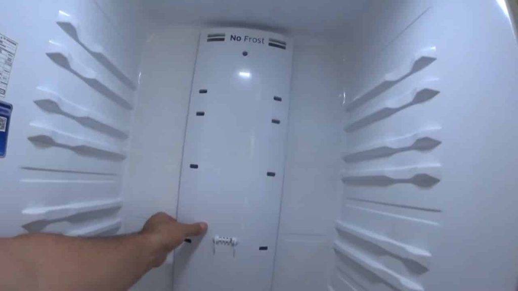 Вентиляторы Но Фрост расположены за этой панелью по центру холодильной камеры