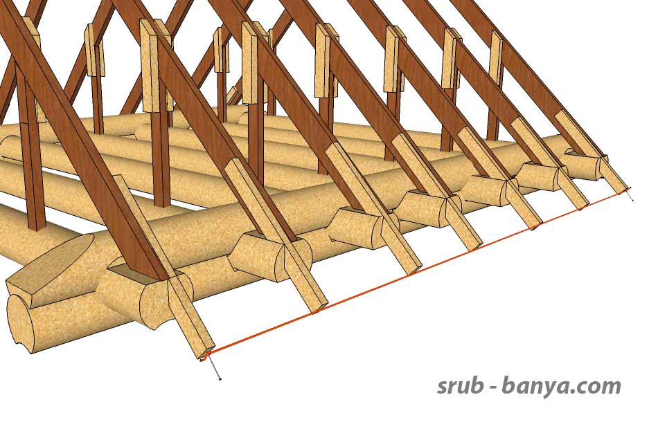 Ригель и стропила делаются из одного материала и одинакового сечения. Ригель, с помощью гвоздей длиной 150 мм, крепится напрямую без каких-либо прокладок, при этом гвозди с обратной стороны загибаются.