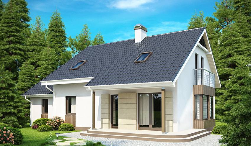 Для сплошной обрешётки шаг можно увеличить до 1 м. На обрешетку необходимо настелить гидроизоляционную плёнку, затем выполнить установку кровли. Строительство дома завершается отделкой стен облицовочными материалами как снаружи, так и внутри.