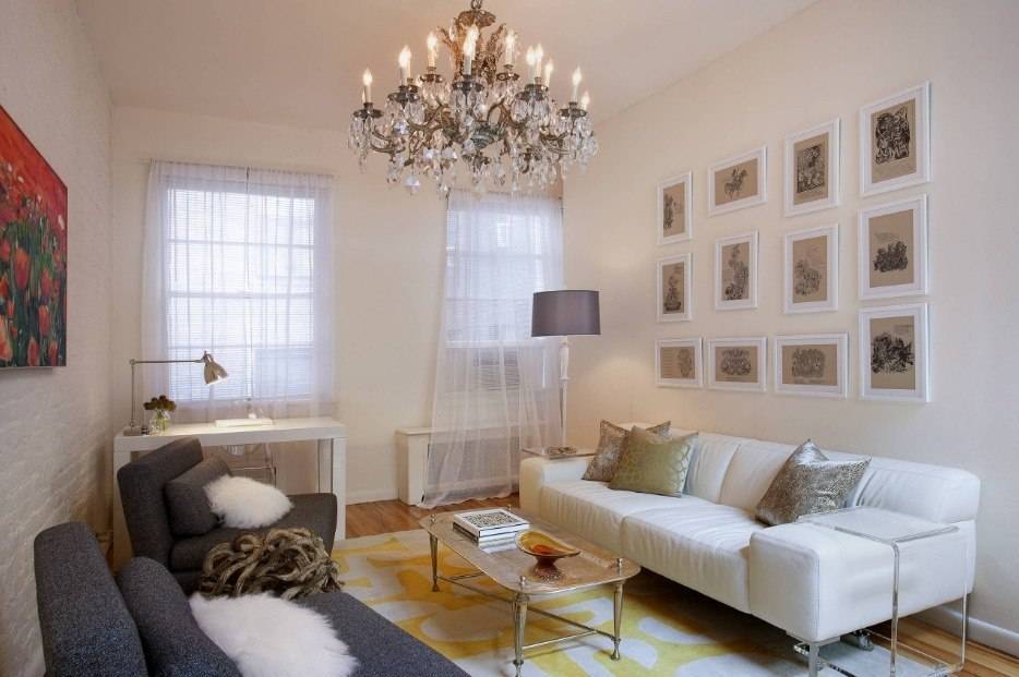 Если комната маленькая не стоит загружать её мелкими элементами. Большое количество статуэток, вазочек, фотографии на стенах и картин сделает комнату не только визуально меньше, но и более пыльной, так как не будет хватать чистого воздуха.