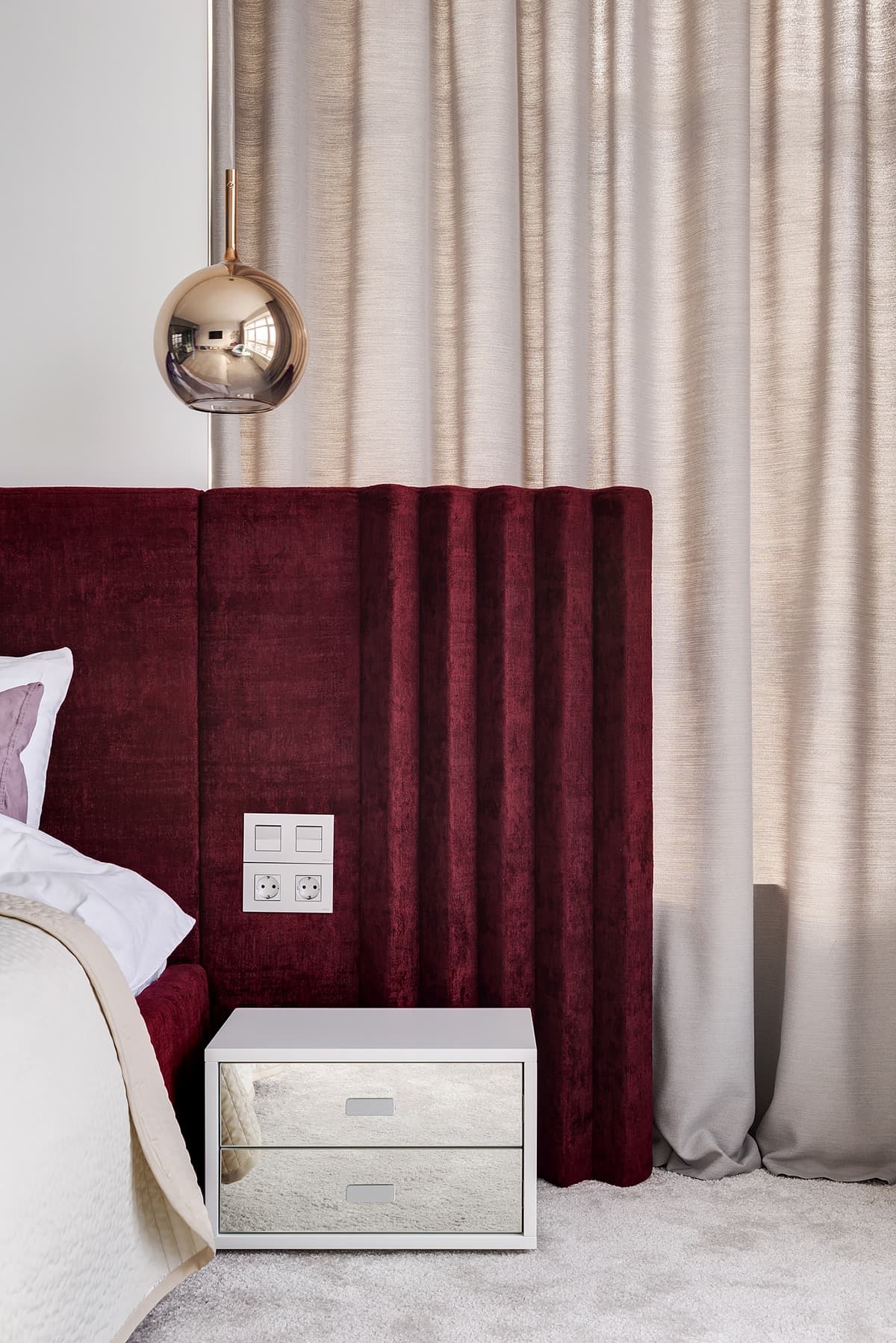 Глубокий и стильный цвет бордо особенно выгодно подчеркнут элементы с золотым отливом