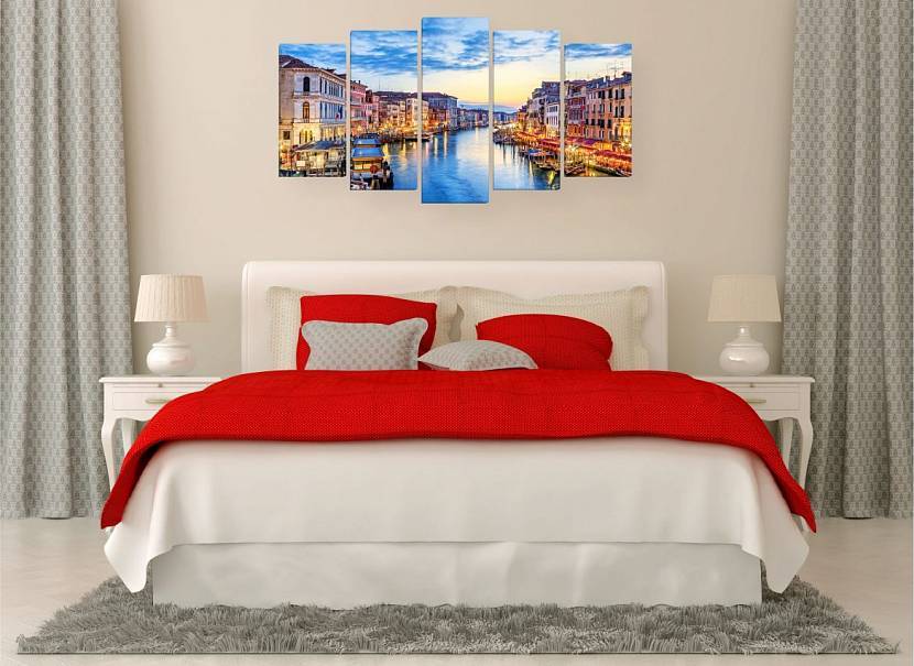 - Холст на стене спальни может олицетворять заветные желания. Если человек мечтает больше путешествовать, следует повесить изображение места, куда ему хотелось бы отправиться. Считается, что регулярное лицезрение мечты позволяет легче находить возможности для её осуществления.
