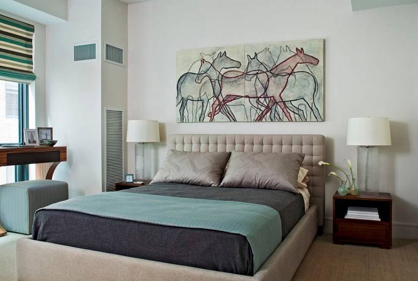Эскиз лошадей на картине в спальне у изголовья кроватиИсточник kosour.ru