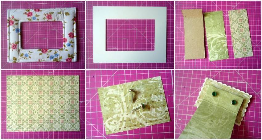 Чтобы закрепить картину в рамке, капните на картонную подложку несколько капель клея по периметру и в центре, и просто приклейте на них картину. Закрепите ткань на рамке по бокам.