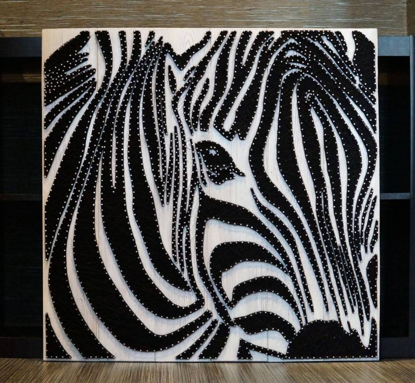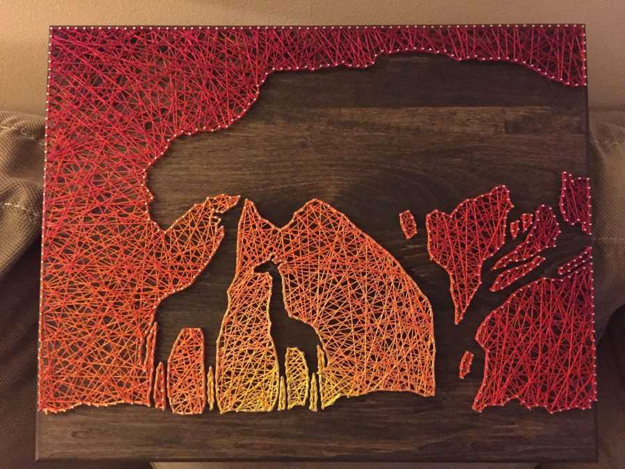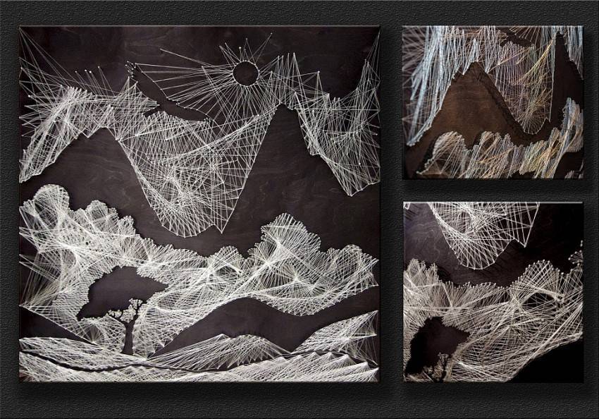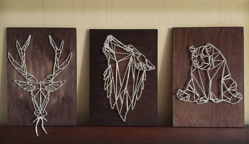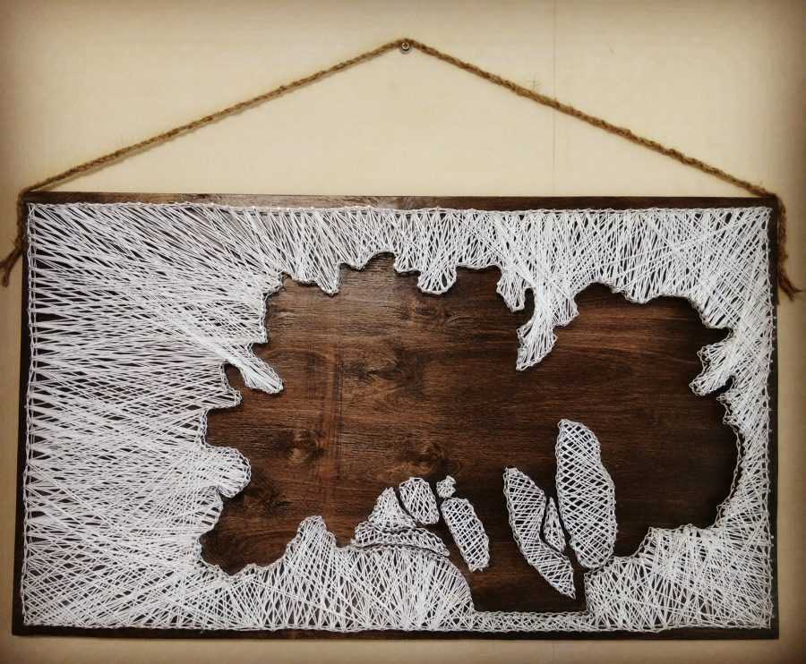 Идеи картин своими руками могут быть совсем неожиданными. Как, например, способ изображения животных или растений с помощью цветных ниток, натянутых на гвоздики.