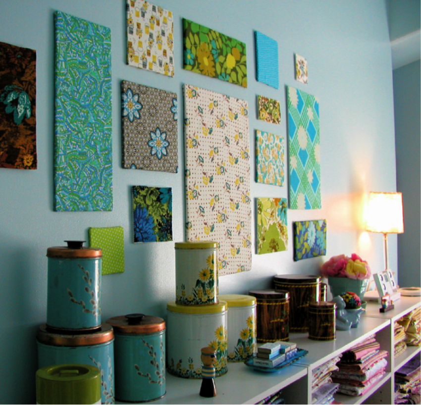 А можно обрезками, подобранными по цвету, оформить панели шкафов, стенки полок, обклеить баночки для сыпучих продуктов. И все, что вам понадобится помимо лоскутиков, это – ножницы, клей и немного фантазии