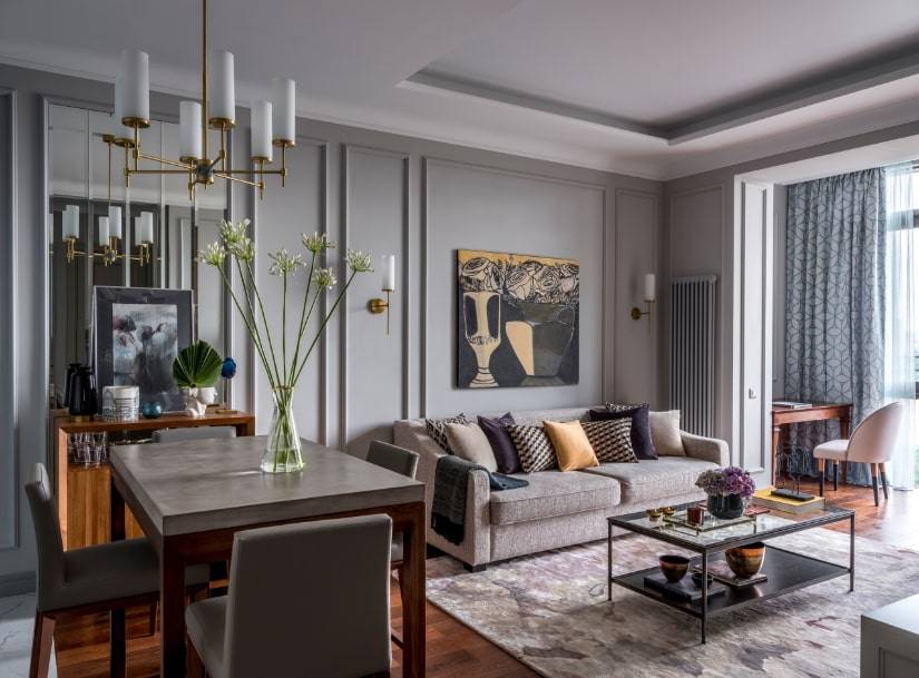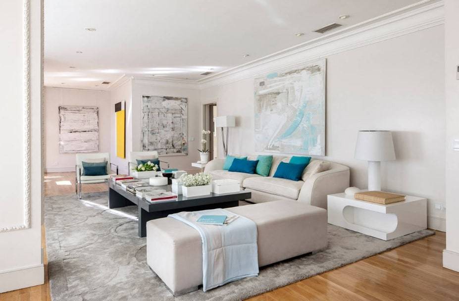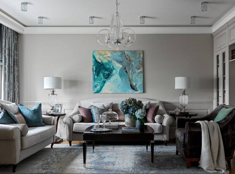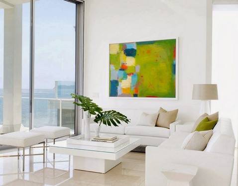 Картины-акценты наиболее органичны в современных интерьерах, выполненных преимущественно в нейтральных и условно-нейтральных тонах (белом, черно-белом, сером, бежевом).