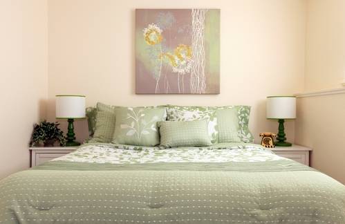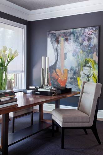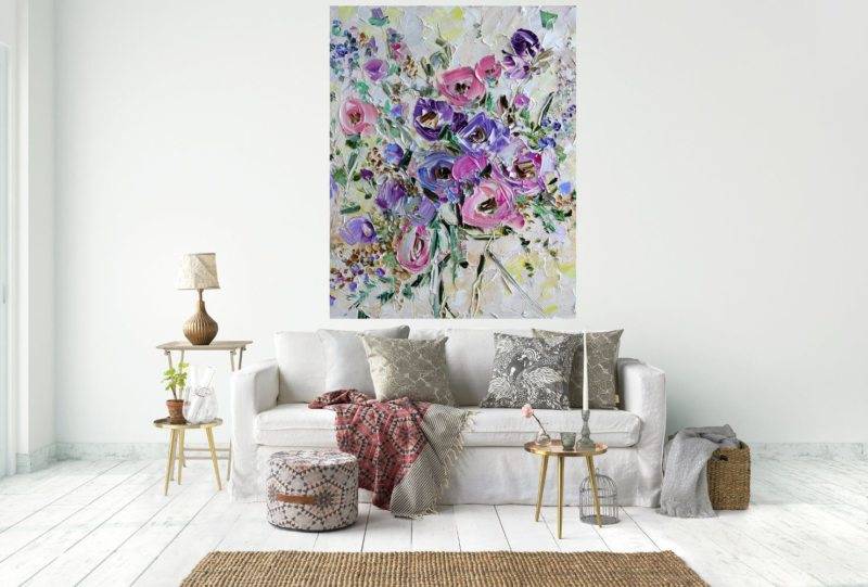 С чем должна быть созвучна картина и так ли это необходимо? Возможны три схемы. Первая: картина рифмуется с интерьером, полностью соответствует его палитре и словно растворяется в нем. В ней нет цветов, отсутствующих в интерьере. Да и по гамме она идентична: если интерьер пастельный, то и полотно выполнено в той же манере. Зачастую картина, идеально срифмованная с окружающей обстановкой, остается почти незаметной — настолько гармонично она включается в антураж. При этом свою главную роль она выполняет, то есть избавляет стену от пустоты. Такая картина может играть роль связующего элемента. Например, в гостиной с зелеными стенами и светло-фиолетовой мебелью постер с веткой сирени свяжет между собой основные цвета, добавив интерьеру целостности.