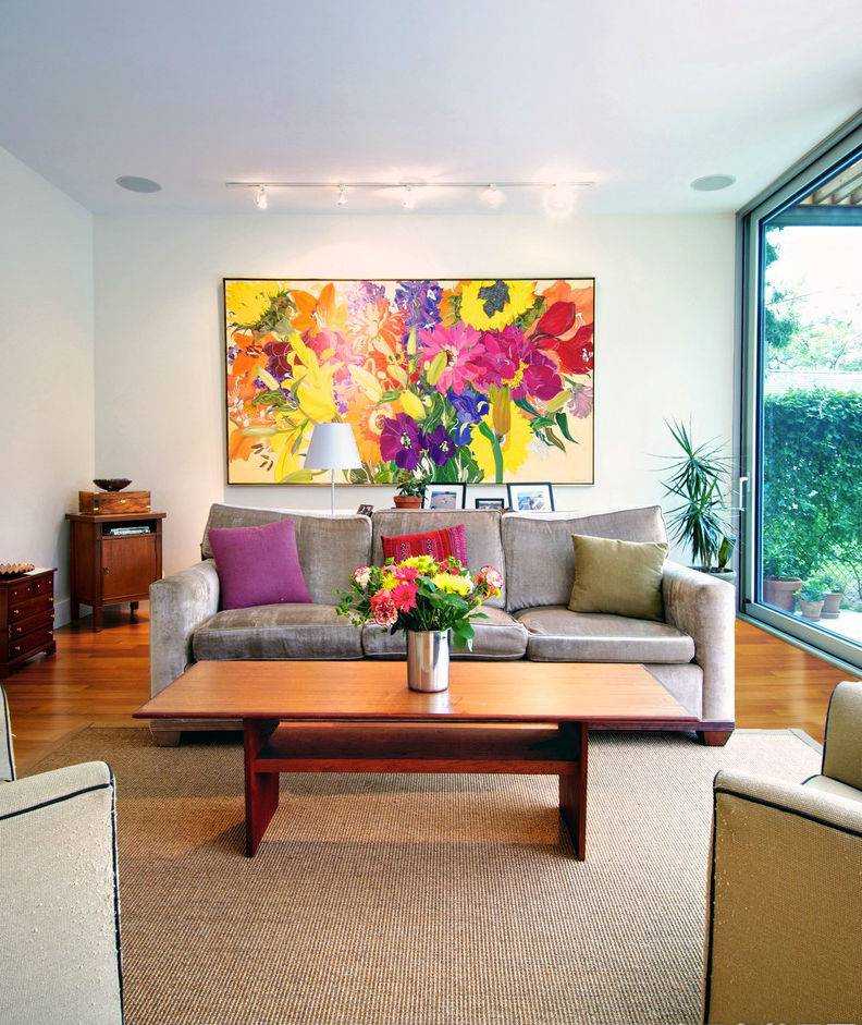 Картина в гостиной должна быть не только удачно подобрана по стилю, размерам и цветовой гамме, она должна нести позитивный смысл