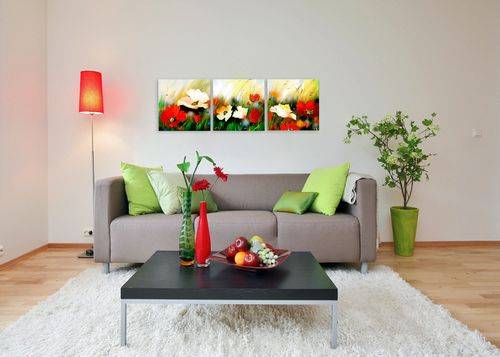 Картина – вот главный акцент на стену, с тех пор, как в постсоветских традициях вешания ковра на стену, наступили глобальные перемены. Правда, далеко не сразу научились подбирать картину по всем правилам. Золоченые рамы, немного нелепые в своих претензиях на роскошество, мягко сказать, неуверенно смотрелись в условиях малогабаритных квартир.
