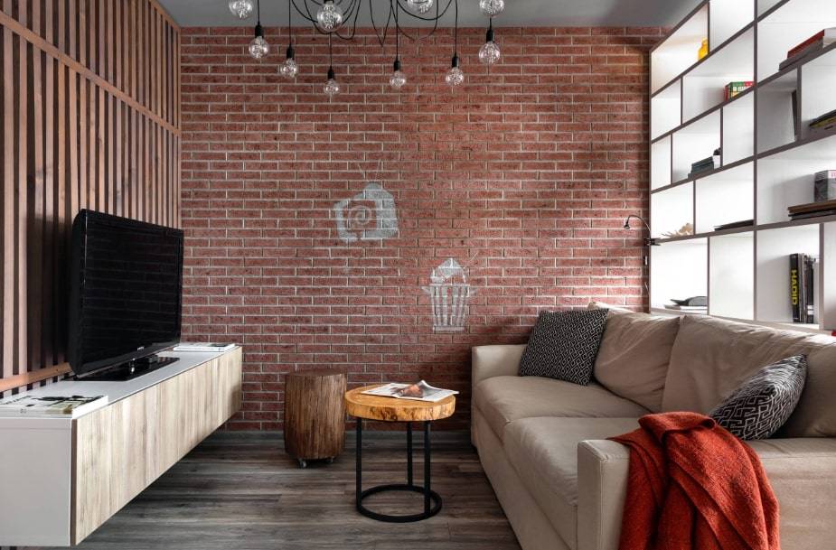 Декоративный камень и декоративный кирпич подойдут для оформления стены у камина (телевизора или фальш-камина) для создания интерьера в скандинавском стиле, кантри и классики. Такая облицовка не боится влаги, стоит дешевле природного камня и не создает дополнительной нагрузки.