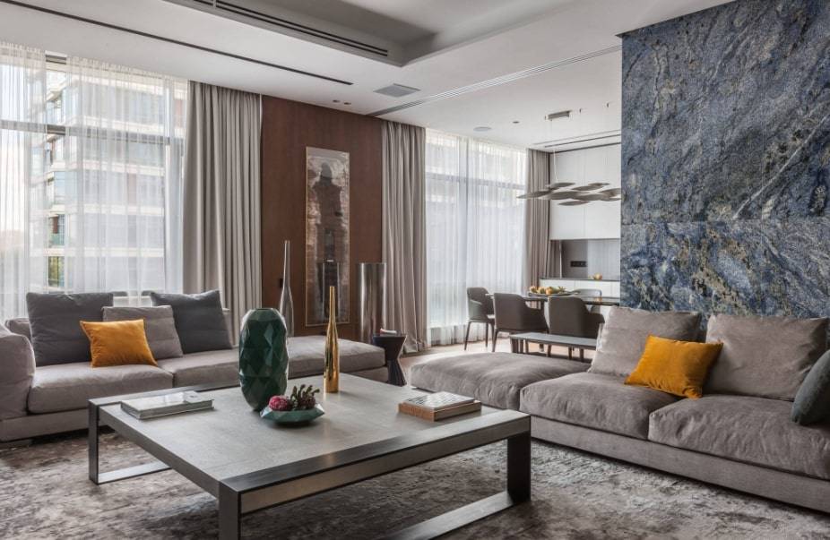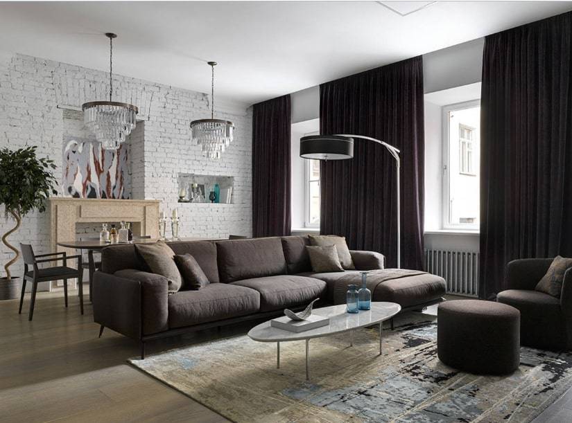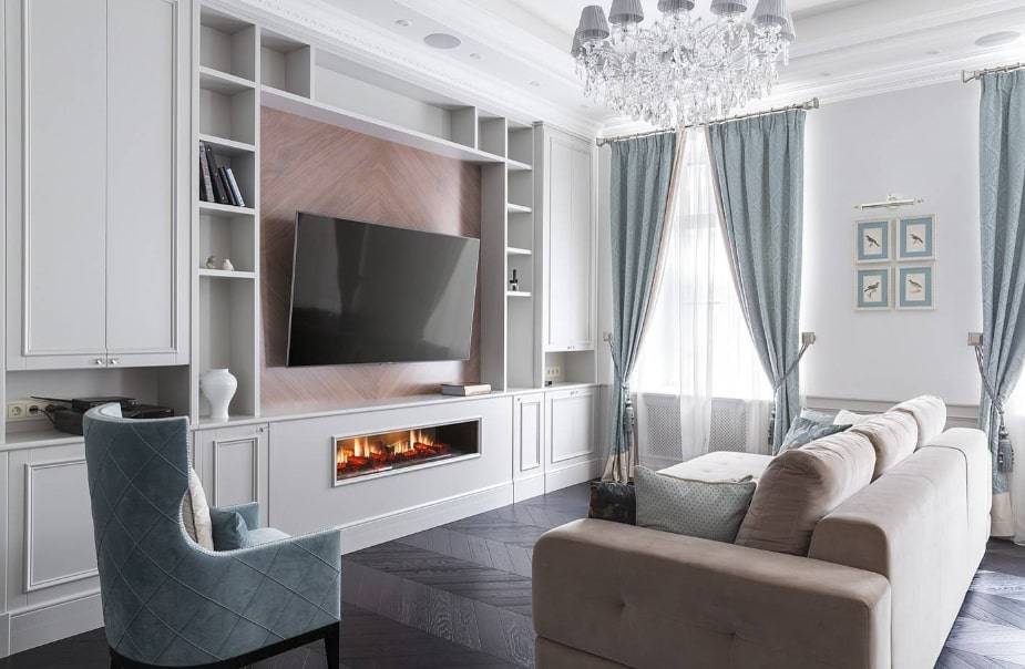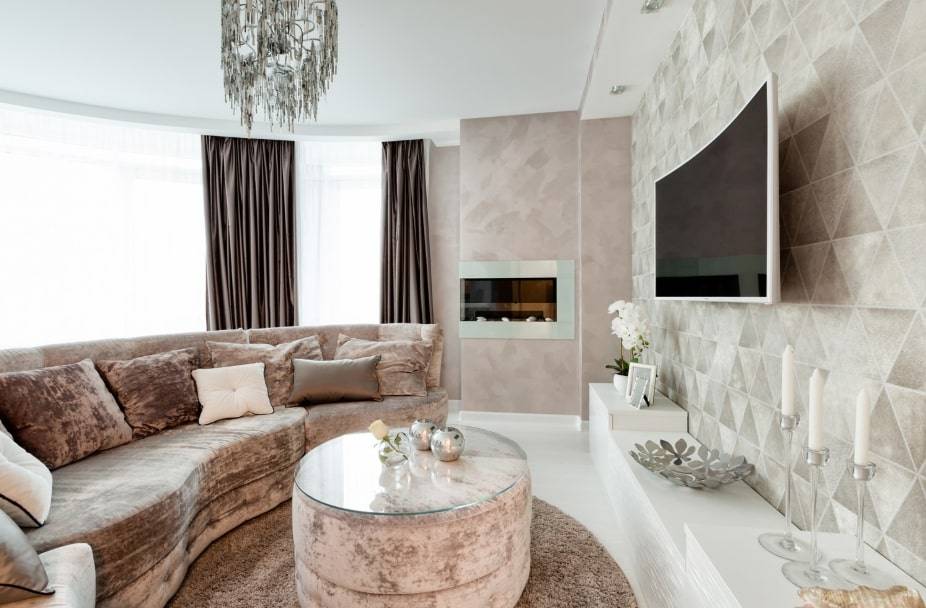 Выбор материалов для оформления зависит от желаемого конечного результата для удачного сочетания фактур декора стен в гостиной и мебели.