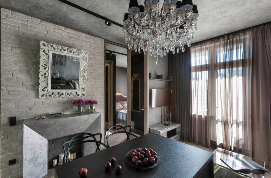 Для отделки используют искусственный камень или обои. Дизайнеры также прибегают к отделке с помощью царапин и потертостей стен.